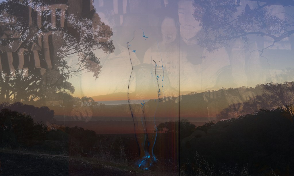 Listening to Call Me If You Get Lost – The Estate Sale on repeat while walking often stumbling in near dark along half trails left an enduring impression which is only surfacing now through the creation of new mixed media work, blending old paintings with photos taken at that tumultuous, exciting time.